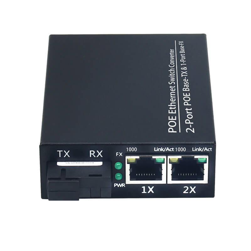 3 Ports Enterprise PoE Ethernet Media Converter 2×10/100/1000M PoE Ports + 1×100/1000M Fiber Port